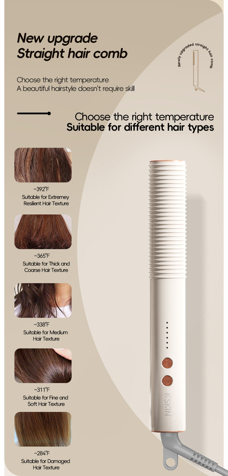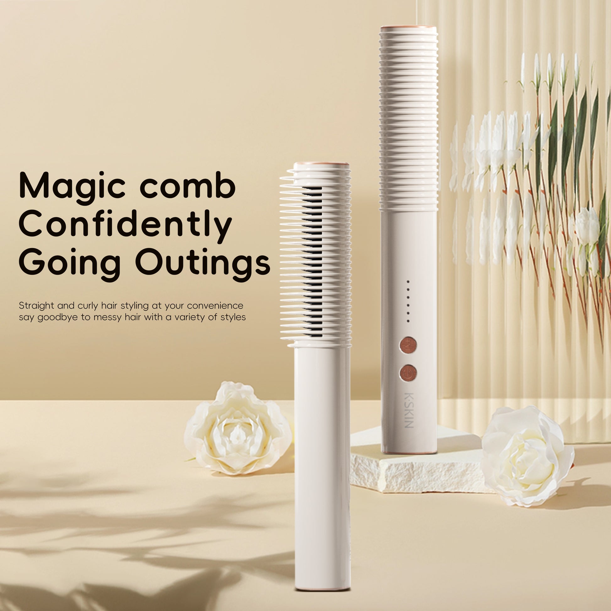 Rizador, peine para cabello liso, ventilador pequeño para alisar y rizar, doble propósito
